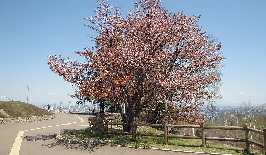 「真駒內公園」位在札幌南區,面積約85公頃,西南邊又有茂盛的自然森林,可說擁有豐富的四季景觀,春季賞櫻、秋季賞楓都很人氣,這裏也是札幌各中小學校遠足踏青、民眾運動散步的最佳場所。園內除了種植了700棵的蝦夷山櫻花外,還有近300棵的八重櫻,4月下旬時可以先欣賞蝦夷山櫻花之後,接著又可以再觀賞5月中旬的八重櫻,幾乎一整個月都可以體驗賞櫻的樂趣。尤其是園內「太陽廣場」附近的櫻花道路,在滿開的時候兩旁的櫻花築成一條粉色的隧道,非常值得一看。